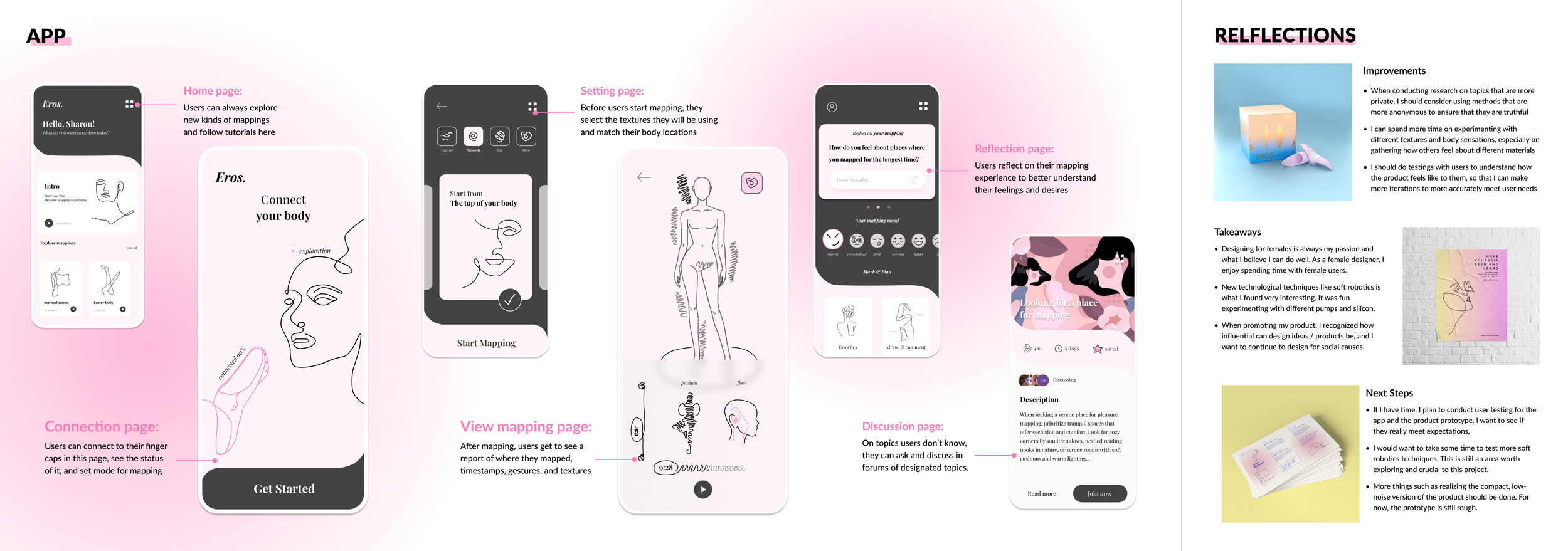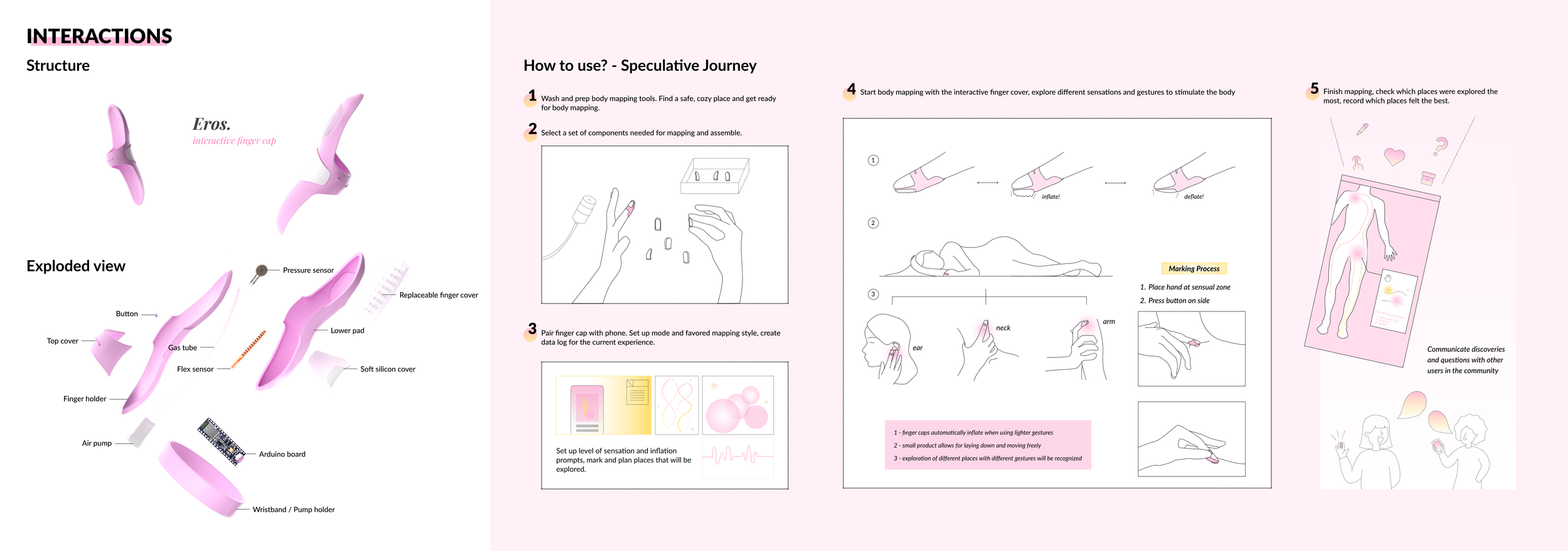 Originally, Eros is the Greek God of love, lust, and desire. He gives love and hate to humans with his power. In this project, Eros is a personal item for women to explore sexual desires and love for the body. You no longer need to wait for someone else to give you the power of love, you control your own “Eros”.