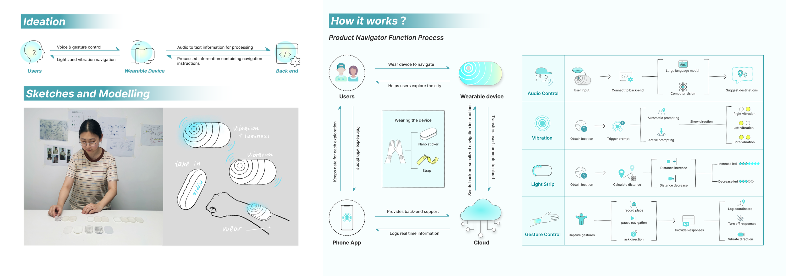 Ripple is a wearable product that elevates the outdoor navigation experience. Powered by a large language model and computer vision engine, ripple can interpret abstract user prompts and take you to the best destination. Simply wear 2 ripples on each side of your arm and start your journey in the city!